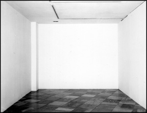I am standing at the southern end of Gallery 101's second floor exhibition space, along with the paraphernalia of the photographer behind me. Numerous bags, cases, lights with stands, a tripod, a 4x5 camera. Next to me is the photographer covered by his black cloth, busily concentrating on blocking out all extraneous light. It takes time to line up the predetermined framing of the white wall, ceiling, and bare floor in front of us, to focus on the verticals and horizontals that demarcate this particular space. Enough time for me to wonder if any space is ever empty. Enough time to think about the artist's past work and its quiet poetry. But can emptiness - air - be poetic?