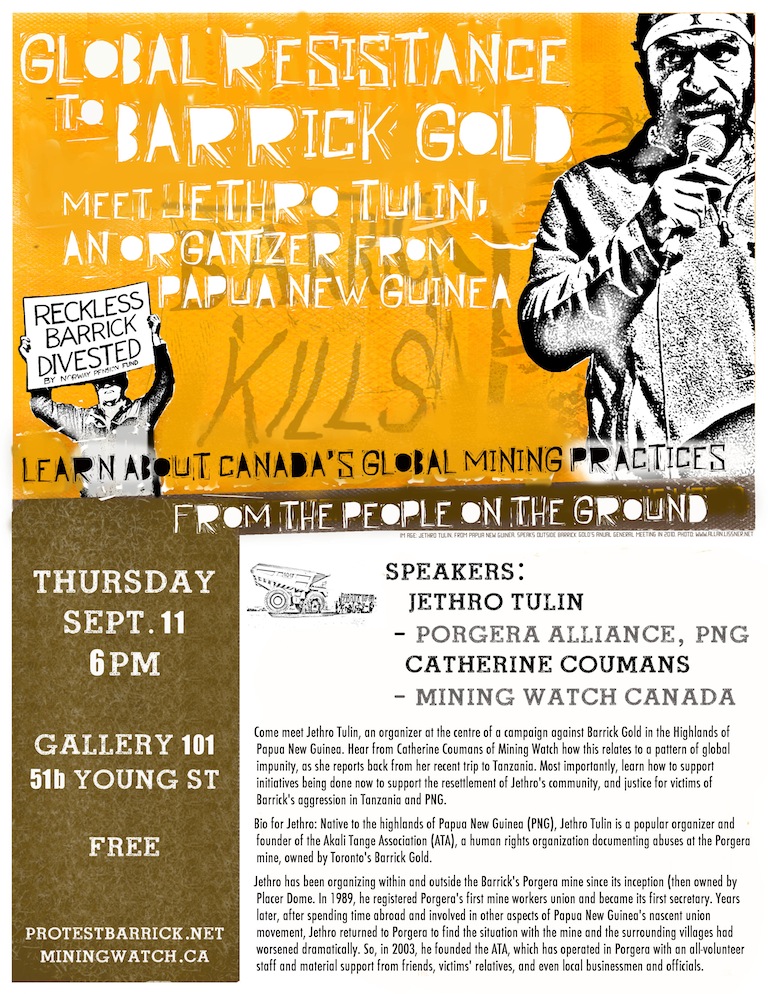 WHAT: short film and discussion with Jethro Tulin of Porgera Alliance in Papua New Guinea and Catherine Coumans of Mining Watch Canada