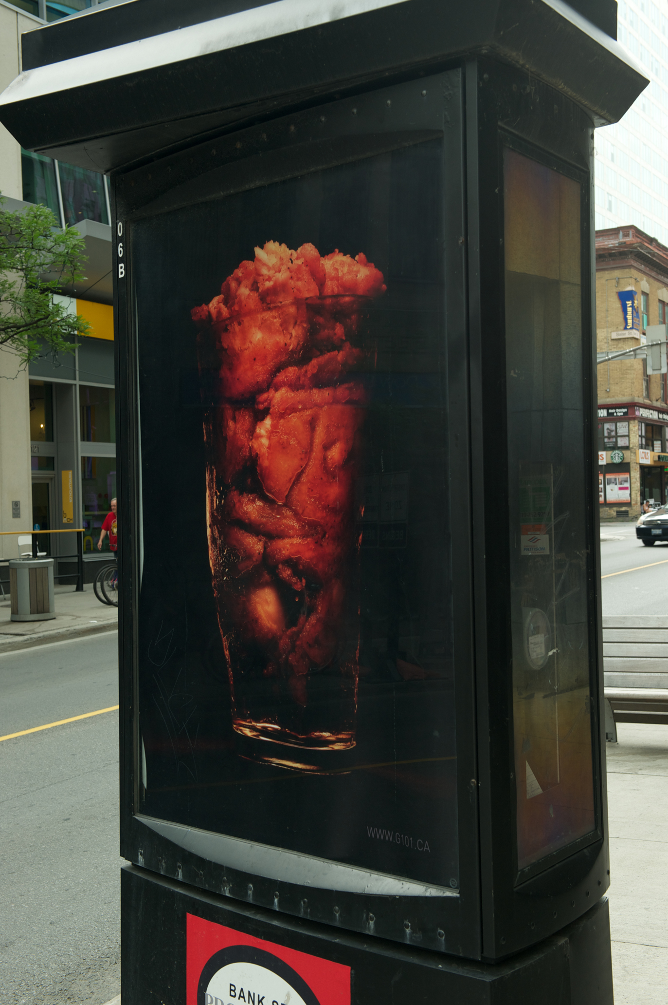 Les images photographiques d’aliments transformés réalisés sans parti pris par l’artiste vancouvérois Mark Mizgala sont placées de manière stratégique sur des enseignes publicitaires extérieures le long de la rue Bank au centre-ville d’Ottawa. En voyant ces images, les passants peuvent se questionner sur les concepts de la nourriture, de la consommation, du consumérisme, des médias de masse et de la publicité, de même que sur les vues contradictoires qui entourent ces notions dans le domaine public. Un texte de John K. Grande, Manger Vrai, accompagne les œuvres. Le film Next Floor de Denis Villeneuve, cinéaste primé de Montréal, sera projeté.